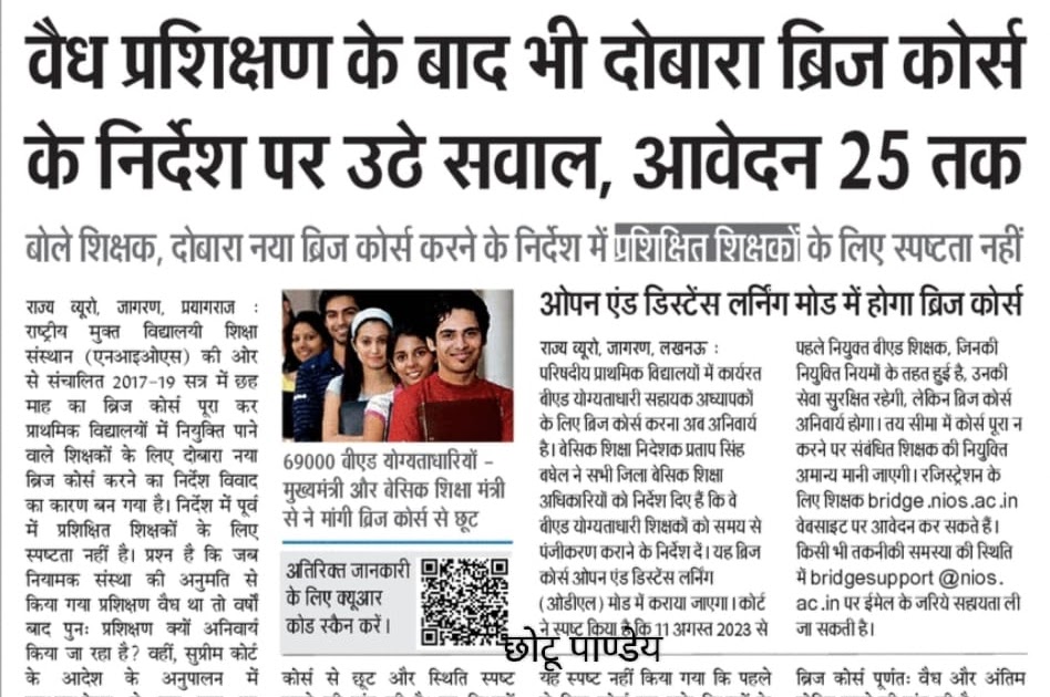 *वैध प्रशिक्षण के बाद भी दोबारा ब्रिज कोर्स के निर्देश पर उठे सवाल, आवेदन 25 तक* *बोले शिक्षक, दोबारा ...