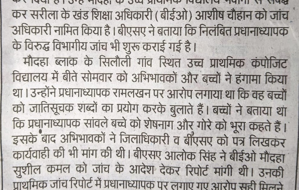 हमीरपुर : स्कूल में साँवले बच्चों को शेषनाग और गोरे को भूरा कहने वाले प्रधानाध्यपक रामलखन सोनी को बीएसए ...