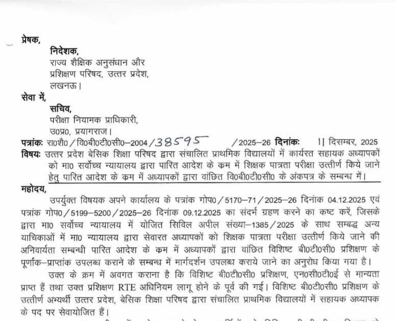 CTET आवेदन हेतु विशिष्ट बीटीसी के अंकपत्र के संदर्भ में SCERT निदेशक का आदेश – UpdateMarts| PRIMARY KA MASTER | SHIKSHAMITRA | Basic Shiksha News