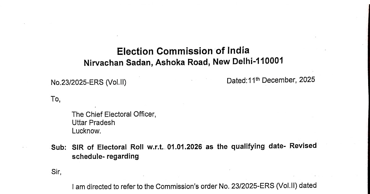 SIR : यूपी में एसआईआर की समय सीमा 31 दिसंबर बढ़ी, मुख्य निर्वाचन अधिकारी ने आयोग को भेजा था ...