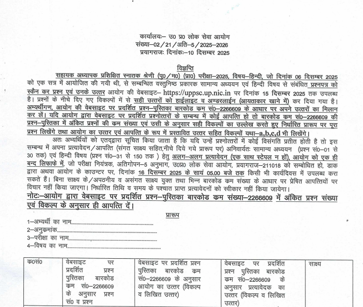 प्रयागराज। राजकीय माध्यमिक विद्यालयों में एलटी ग्रेड या सहायक अध्यापक (प्रशिक्षित स्नातक) शिक्षक भर्ती की हिंदी विषय के लिए छह ...