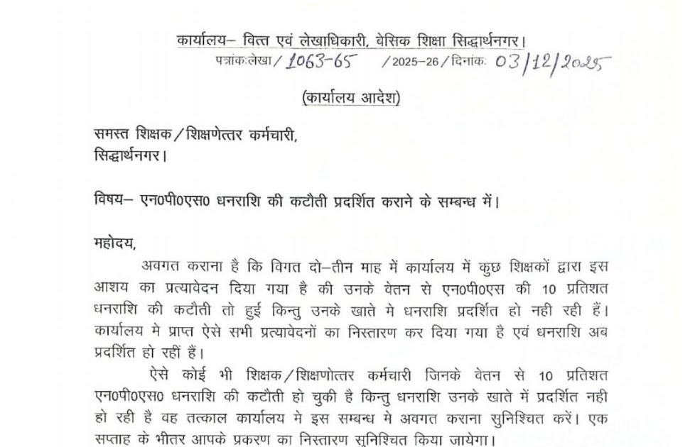 एन०पी०एस० धनराशि की कटौती प्रदर्शित कराने के सम्बन्ध में। – UpdateMarts| PRIMARY KA MASTER | SHIKSHAMITRA | Basic Shiksha News