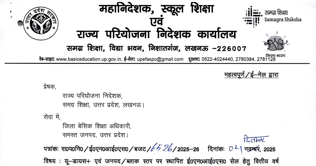 यू-डायस+ एवं जनपद /ब्लाक स्तर पर स्थापित ई0एम0आई0एस0 सेल हेतु वित्तीय वर्ष 2025-26 की वार्षिक कार्ययोजना एवं बजट में अनुमोदित धनराशि की द्वितीय लिमिट जनपदों को जारी करने के सम्बन्ध में। – UpdateMarts| PRIMARY KA MASTER | SHIKSHAMITRA | Basic Shiksha News