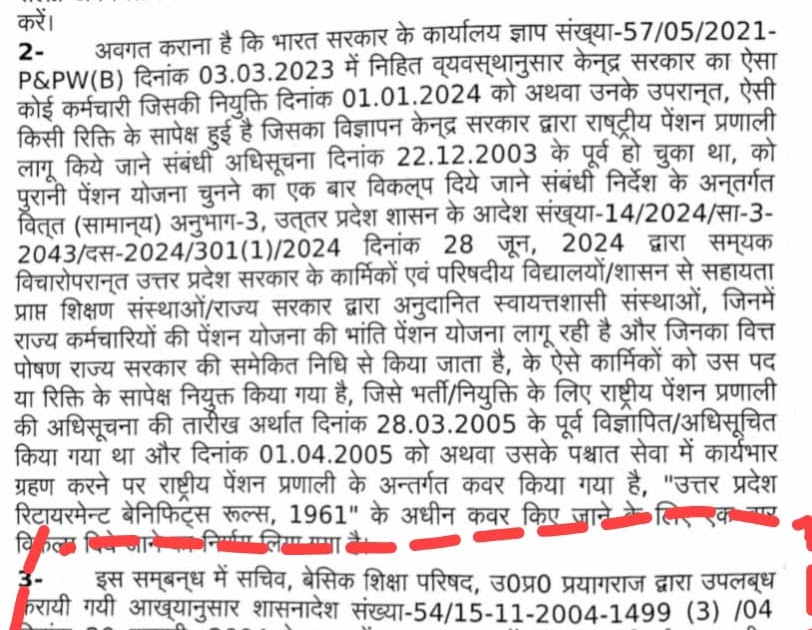 विशिष्ट बी.टी.सी. 2004 से नियुक्त शिक्षकों को पुरानी पेंशन योजना का लाभ देय नहीं — शासनादेश दिनांक 28.06.2024 के आधार पर स्पष्टीकरण – UpdateMarts| PRIMARY KA MASTER | SHIKSHAMITRA | Basic Shiksha News