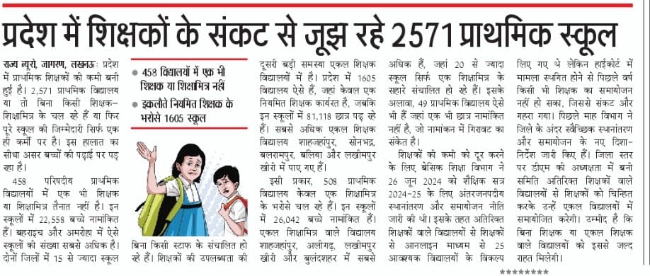 प्रदेश में शिक्षकों के संकट से जूझ रहे 2571 प्राथमिक स्कूल – UpdateMarts| PRIMARY KA MASTER | SHIKSHAMITRA | Basic Shiksha News