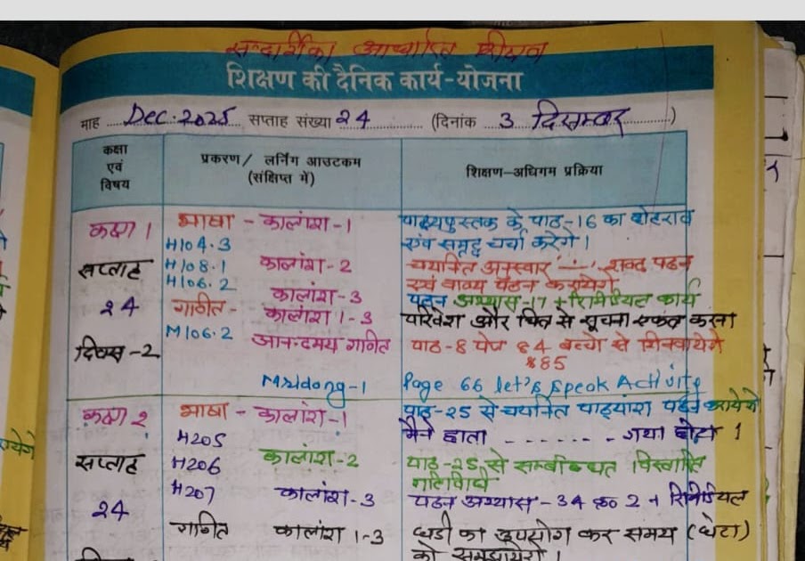 Teacher diary: दिनांक 03 दिसंबर 2025 कक्षा- 01, 02, 03, 04, 05 की भरी हुई शिक्षक डायरी , देखें