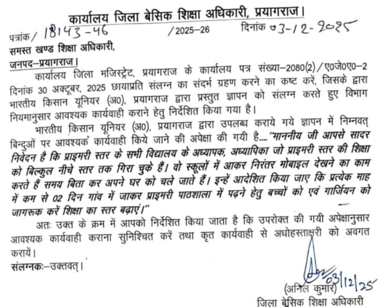 `भारतीय किसान यूनियर (अ0)` द्वारा प्रस्तुत ज्ञापन के आधार पर जिला बेसिक शिक्षा अधिकारी महोदय का निर्देश – UpdateMarts| PRIMARY KA MASTER | SHIKSHAMITRA | Basic Shiksha News