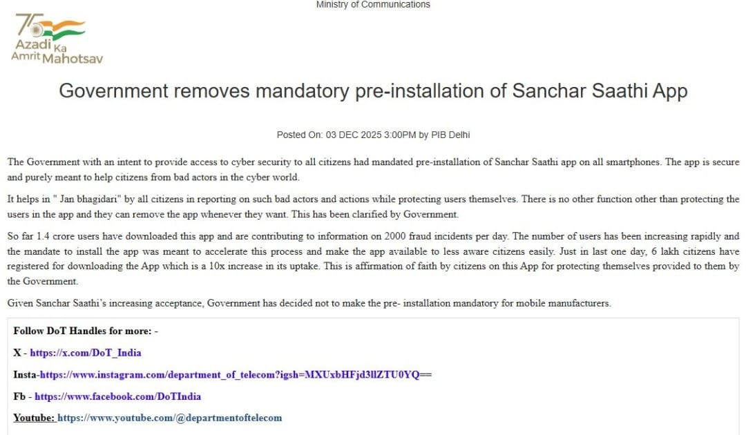 अब फोन में प्री-इंस्टॉल नहीं होगा संचार साथी ऐप, विरोध के बाद सरकार ने वापस ली शर्त – UpdateMarts| PRIMARY KA MASTER | SHIKSHAMITRA | Basic Shiksha News