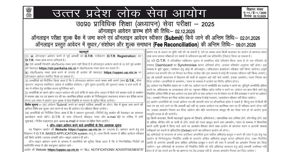 UPPSC प्राविधिक शिक्षा(अध्यापन सेवा)2025 का नोटिफिकेशन हुआ जारी,कुल पद-513 उम्र-21 से 40 वर्ष योग्यता-पदानुसार, आवेदन शुरू💥💯✅ – UpdateMarts| PRIMARY KA MASTER | SHIKSHAMITRA | Basic Shiksha News