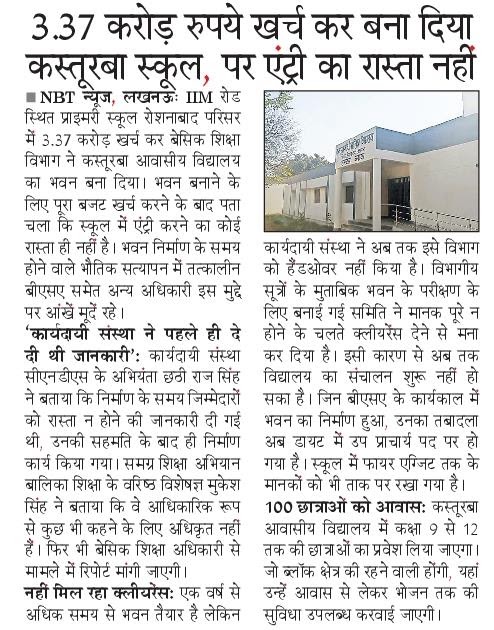 3.37 करोड़ खर्च कर बना दिया कस्तूरबा आवासीय विद्यालय, निकास का पता नहीं, तत्कालीन बीएसए मूंदे रहे आंखे, बर्बाद ...