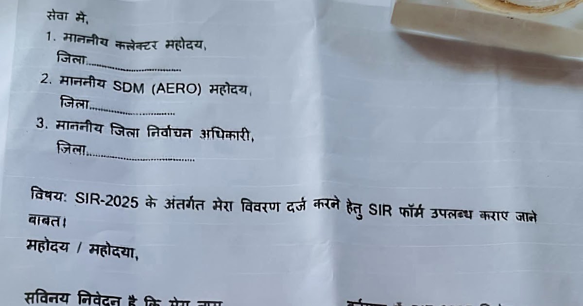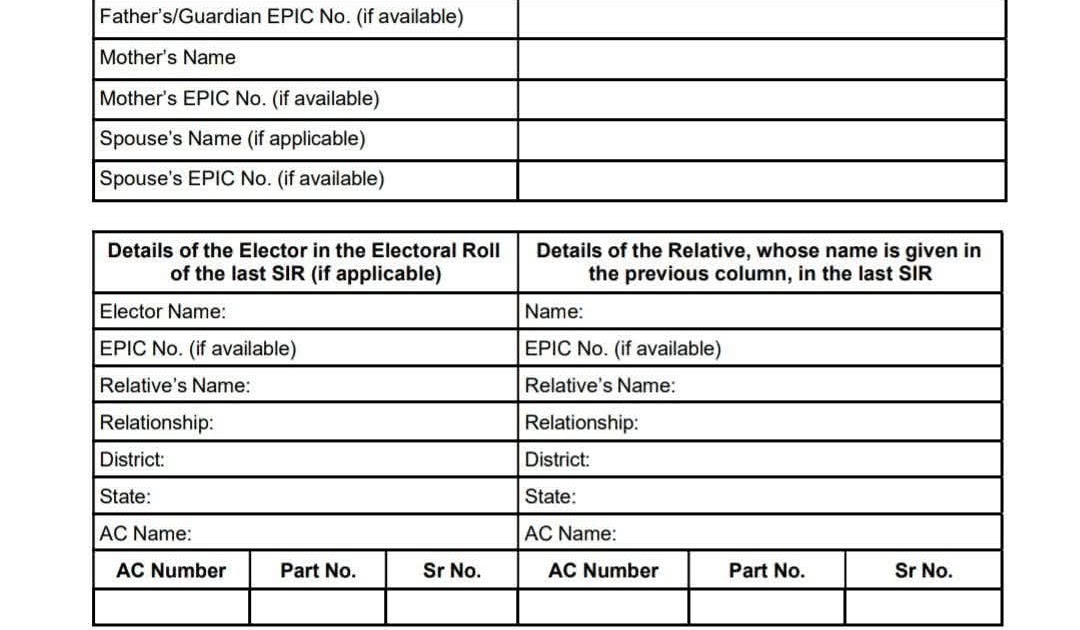 जिनको 2025 SIR का फॉर्म नहीं मिला हुआ है, उनको अपना विवरण दर्ज करने हेतु यह फार्म उपलब्ध कराया गया ...