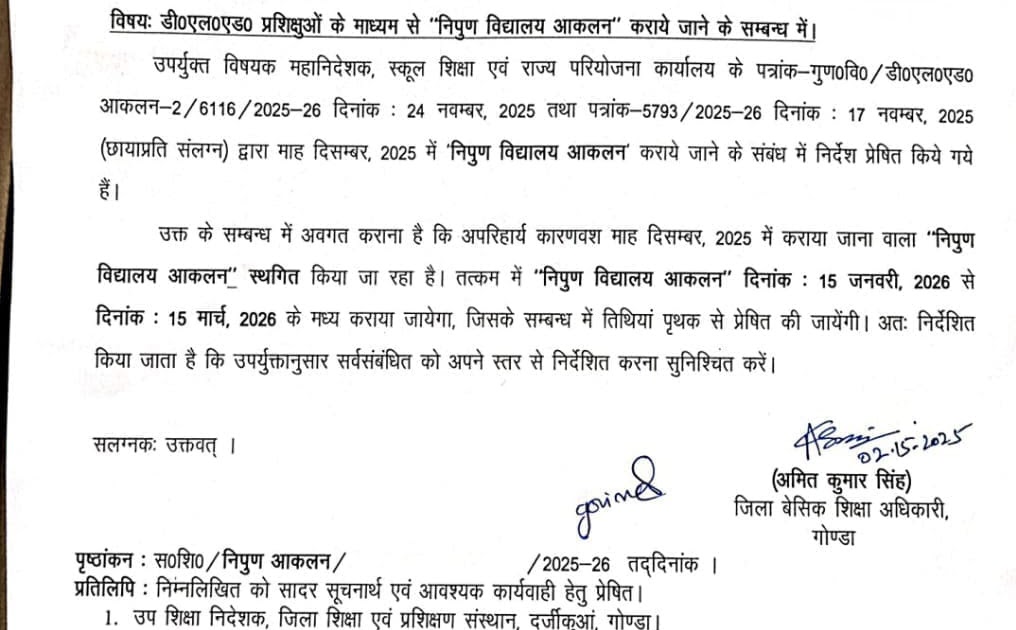 निपुण विद्यालय आकलन 15 जनवरी से 15 मार्च के मध्य कराये जाने के संबंध में आदेश जारी – UpdateMarts| PRIMARY KA MASTER | SHIKSHAMITRA | Basic Shiksha News