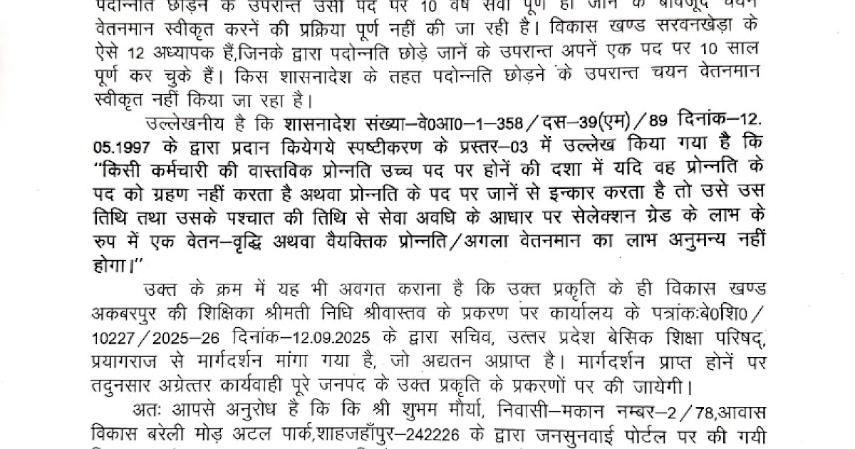 सलेक्शन ग्रेड और प्रमोशन विवाद पर शिकायत का उत्तर कानपुर देहात के बीएसए के द्वारा अगर किसी अध्यापक ने ...