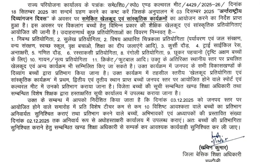 समेकित शिक्षा के अन्तर्गत विशिष्ट आवश्यकता वाले बच्चों हेतु एकेडमिक स्पोर्टस् एवं कल्चरल मीट के सम्बन्ध में। – UpdateMarts| PRIMARY KA MASTER | SHIKSHAMITRA | Basic Shiksha News