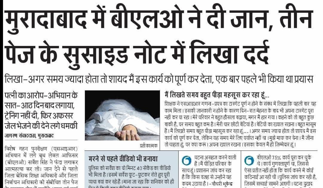 बीएलओ ने दी जान, तीन पेज के सुसाइड नोट में लिखा दर्द – UpdateMarts| PRIMARY KA MASTER | SHIKSHAMITRA | Basic Shiksha News