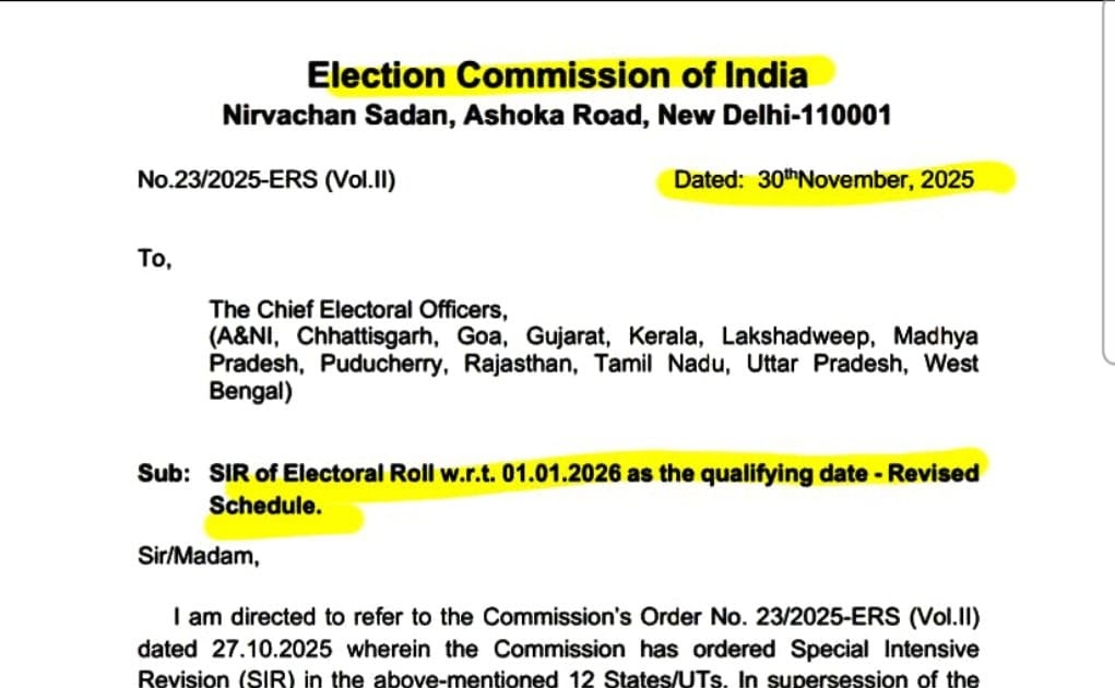 Election Commission ने सभी 12 राज्यों में SIR2025 का समय 7 दिनों के लिए बढ़ाया। : चुनाव आयोग ने ...