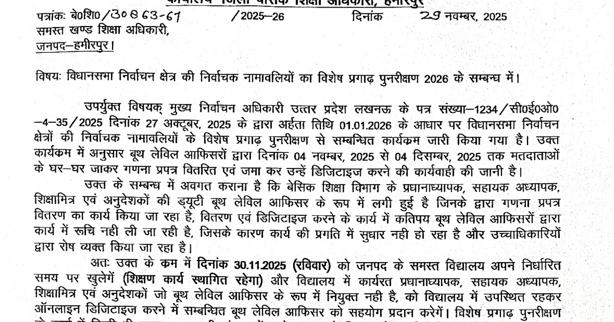 30.11.2025 (रविवार) को जनपद के समस्त विद्यालय अपने निर्धारित समय पर खुलेगें – UpdateMarts| PRIMARY KA MASTER | SHIKSHAMITRA | Basic Shiksha News