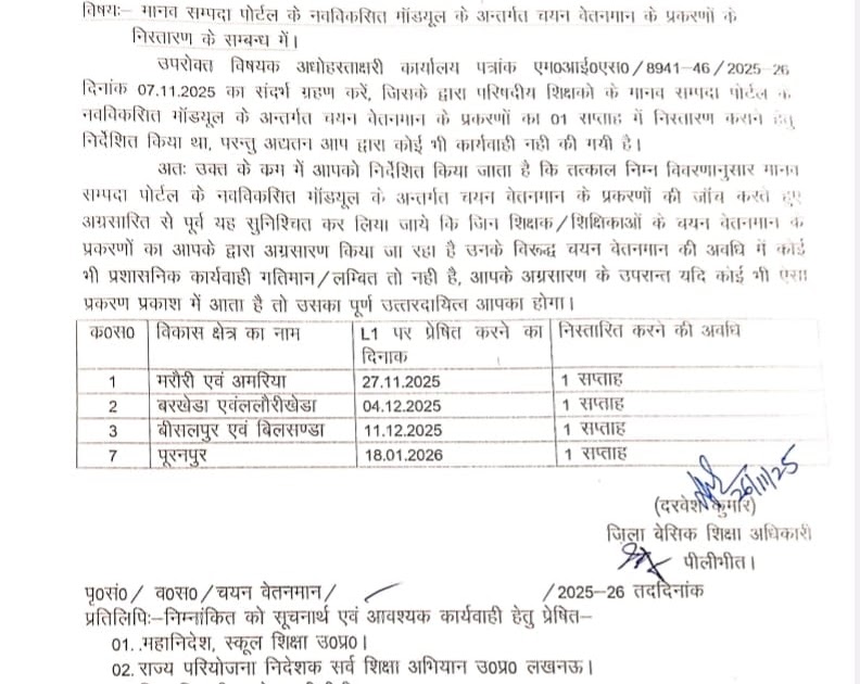 चयन वेतनमान के संबंध में पीलीभीत जिले का आदेश। प्रत्येक ब्लॉक को एक सप्ताह का समय दिया गया। – UpdateMarts| PRIMARY KA MASTER | SHIKSHAMITRA | Basic Shiksha News