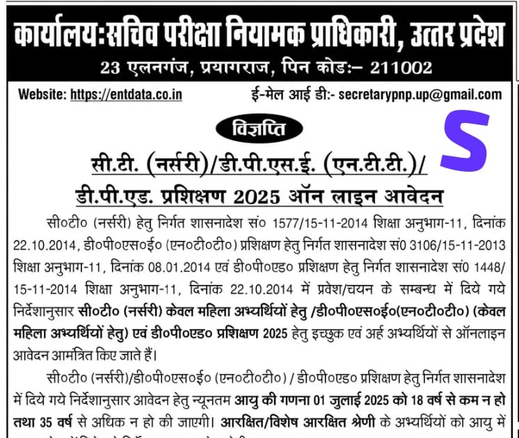 सी.टी. (नर्सरी)/डी.पी.एस.ई. (एन.टी.टी.)/डी.पी.एड. प्रशिक्षण 2025 ऑन लाइन आवेदन – UpdateMarts| PRIMARY KA MASTER | SHIKSHAMITRA | Basic Shiksha News