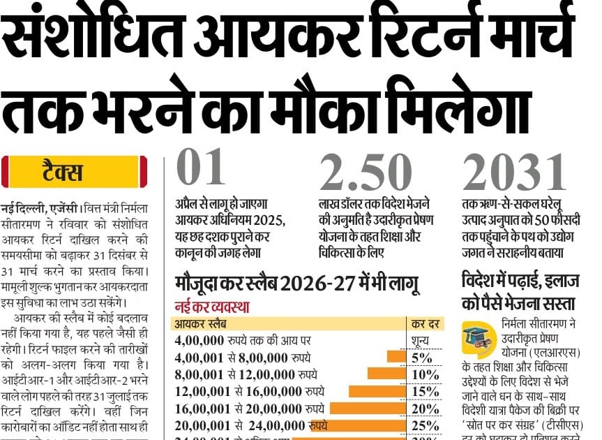 अगले वित्त वर्ष के लिए ऐलान : प्रत्यक्ष कर कानूनों के लिए नया फॉर्म, संशोधित आयकर रिटर्न मार्च तक भरने का मौका मिलेगा – UpdateMarts| PRIMARY KA MASTER | SHIKSHAMITRA | Basic Shiksha News
