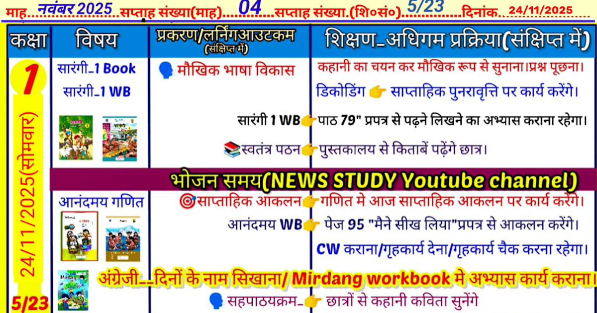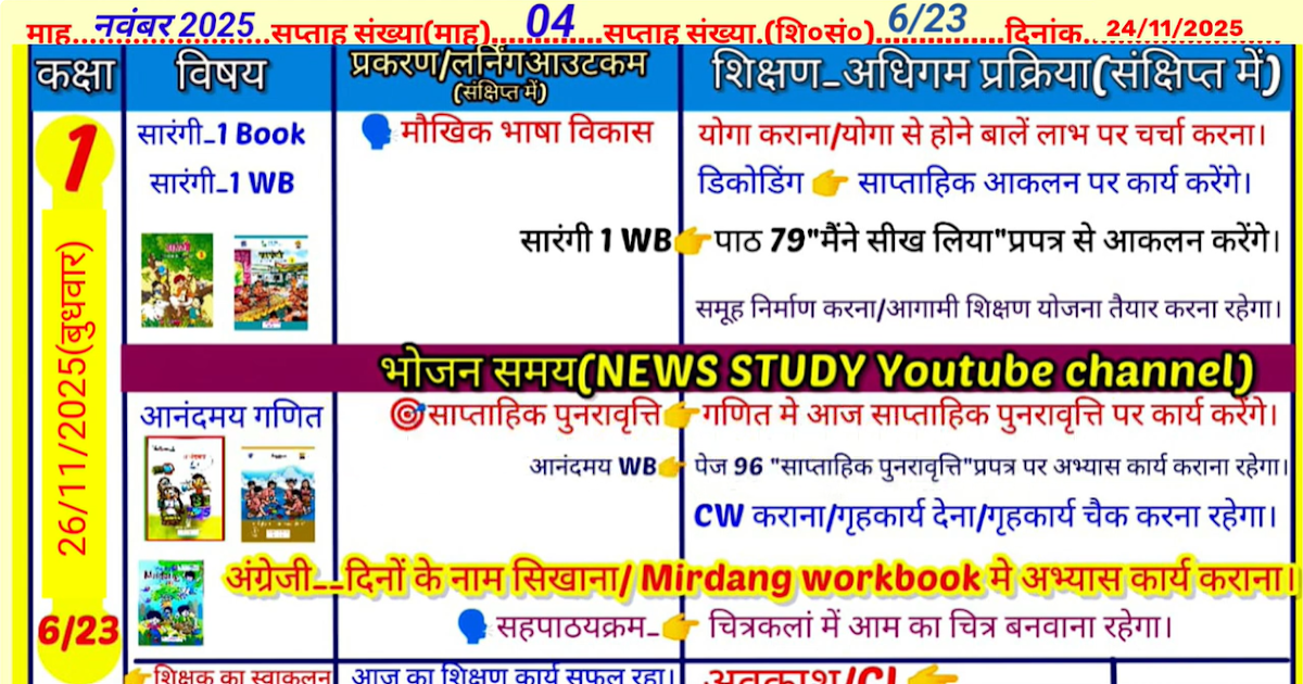 Teacher diary: दिनांक 24 नवंबर 2025 कक्षा- 01, 02, 03, 04, 05 की भरी हुई शिक्षक डायरी , देखें