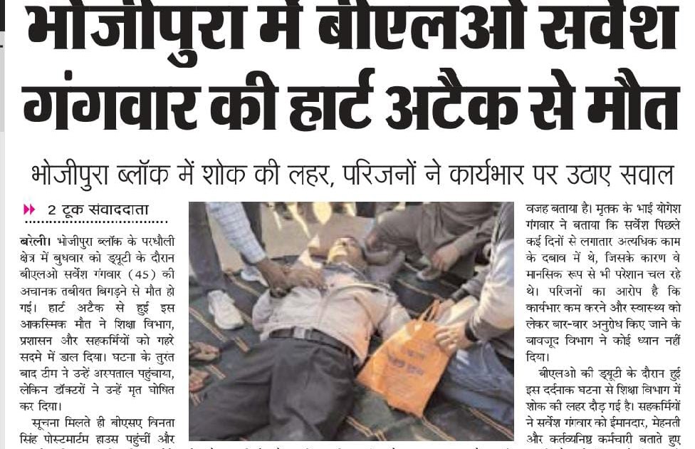 बरेली में BLO की ड्यूटी के दौरान मौत से हड़कंप:* SIR का अधिक प्रेशर होने की वजह से गई जान, ...