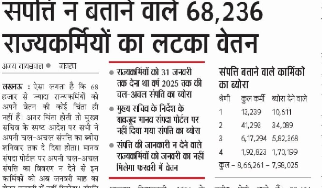 पूरे प्रदेश से 68336 राज्यकर्मियों ने संपत्ति का ब्यौरा नही दिया। – UpdateMarts| PRIMARY KA MASTER | SHIKSHAMITRA | Basic Shiksha News
