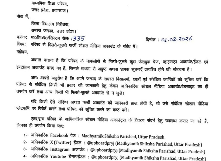 परिषद से मिलते-जुलते फर्जी सोशल मीडिया अकाउंट के संबंध में समस्त DIOS को पत्र – UpdateMarts| PRIMARY KA MASTER | SHIKSHAMITRA | Basic Shiksha News