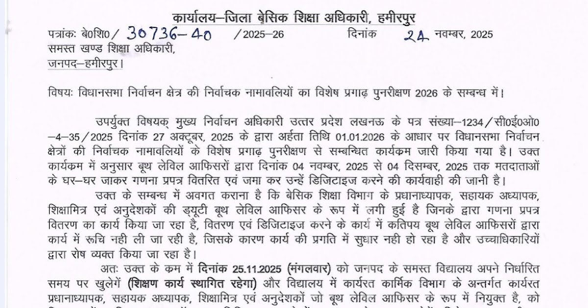 दिनांक 25 नवंबर 2025 को विद्यालय खोले जाने के संबंध में – UpdateMarts| PRIMARY KA MASTER | SHIKSHAMITRA | Basic Shiksha News