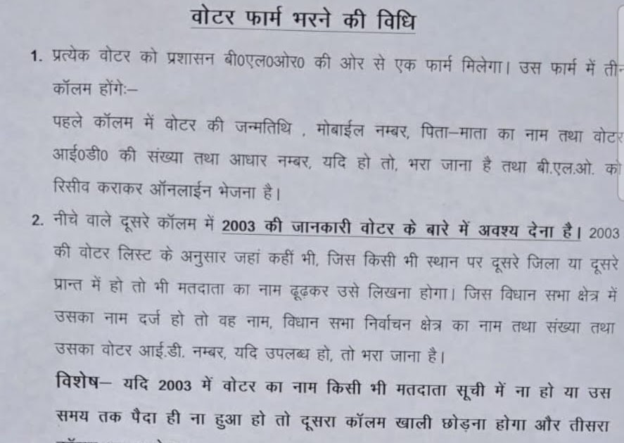 वोटर फार्म भरने की विधि 1. प्रत्येक वोटर को प्रशासन बी०एल०ओर० की ओर से एक फार्म मिलेगा। उस फार्म ...