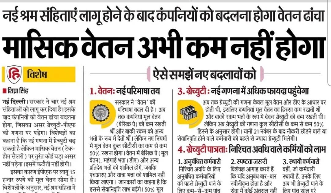 मासिक वेतन अभी कम नहीं होगा: नई श्रम संहिताएं लागू होने के बाद कंपनियों को बदलना होगा वेतन ढांचा – UpdateMarts| PRIMARY KA MASTER | SHIKSHAMITRA | Basic Shiksha News