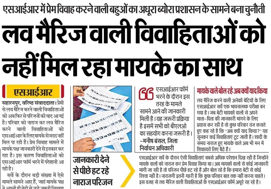 SIR: लव मैरिज वाली विवाहिताओं को नहीं मिल रहा मायके का साथ, जानकारी देने से पीछे हट रहे नाराज परिजन, मायके वाले बोल रहे अब क्यों याद किया – UpdateMarts| PRIMARY KA MASTER | SHIKSHAMITRA | Basic Shiksha News