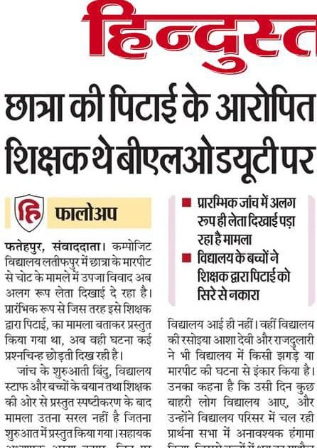 *फतेहपुर:* छात्रा की पिटाई के आरोपित शिक्षक थे बीएलओ ड्यूटी पर, प्रारम्भिक जांच में अलग रूप ही लेता दिखाई ...