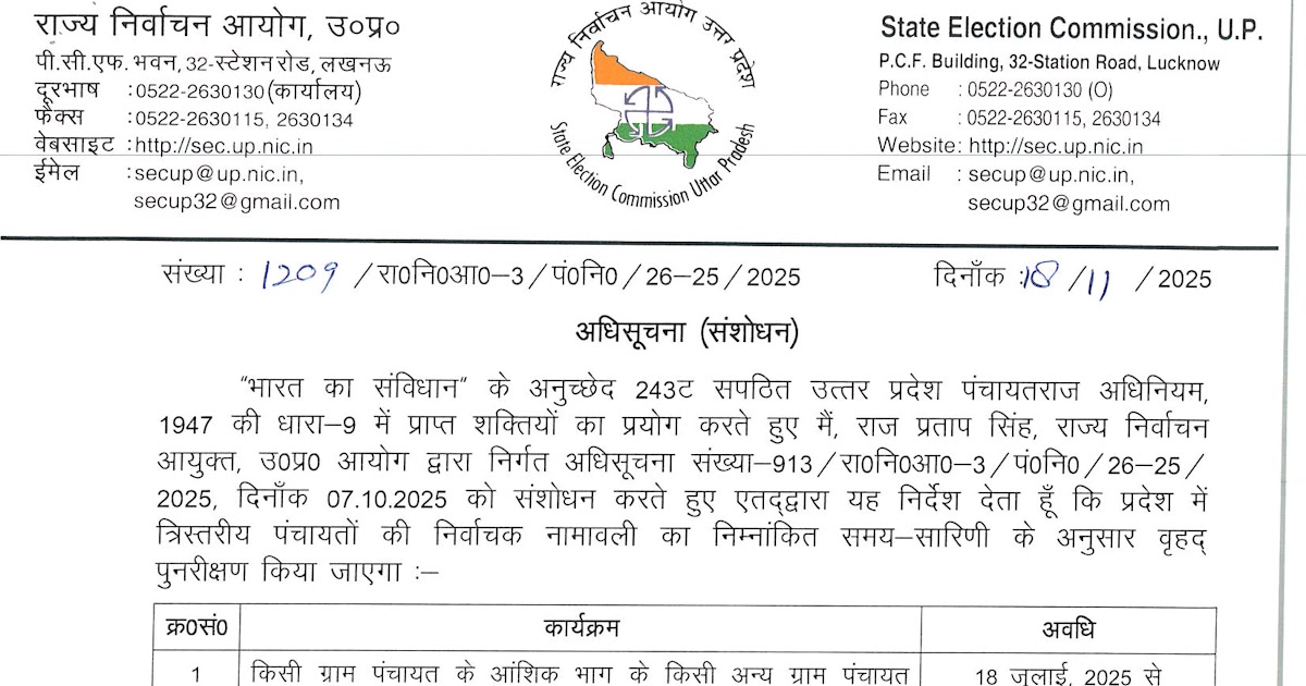 त्रिस्तरीय पंचायत निर्वाचक नामावलियों के वृहद पुनरीक्षण 2025 हेतु अधिसूचना (संशोधन)। – UpdateMarts| PRIMARY KA MASTER | SHIKSHAMITRA | Basic Shiksha News