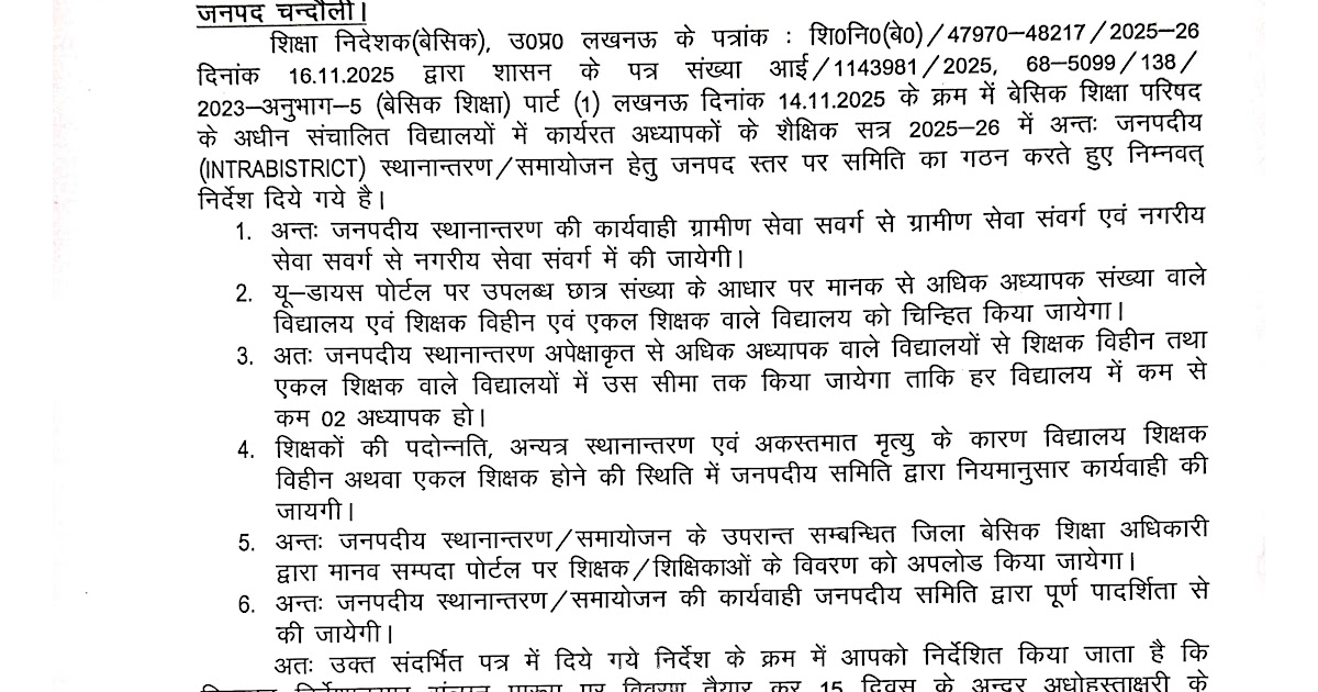अंत- जनपदीय स्थानांतरण-समायोजन के संबंध में – UpdateMarts| PRIMARY KA MASTER | SHIKSHAMITRA | Basic Shiksha News