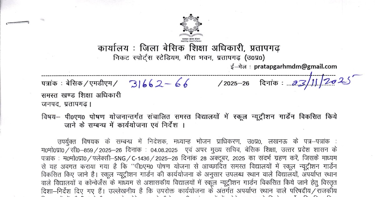 पी०एम० पोषण योजनान्तर्गत संचालित सगस्त विद्यालयों में स्कूल न्यूट्रीशन गार्डेन विकसित किये जाने के सम्बन्ध में कार्ययोजना एवं निर्देश ...