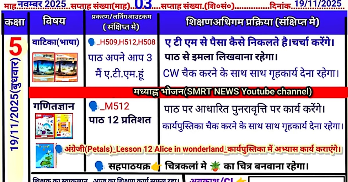 Teacher diary: दिनांक 19 नवंबर 2025 कक्षा- 01, 02, 03, 04, 05 की भरी हुई शिक्षक डायरी , देखें ...