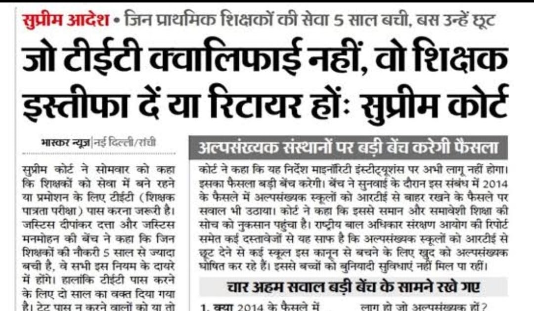 जो टीईटी क्वालिफाई नहीं, वो शिक्षक इस्तीफा दें या रिटायर होंः सुप्रीम कोर्ट – UpdateMarts| PRIMARY KA MASTER | SHIKSHAMITRA | Basic Shiksha News
