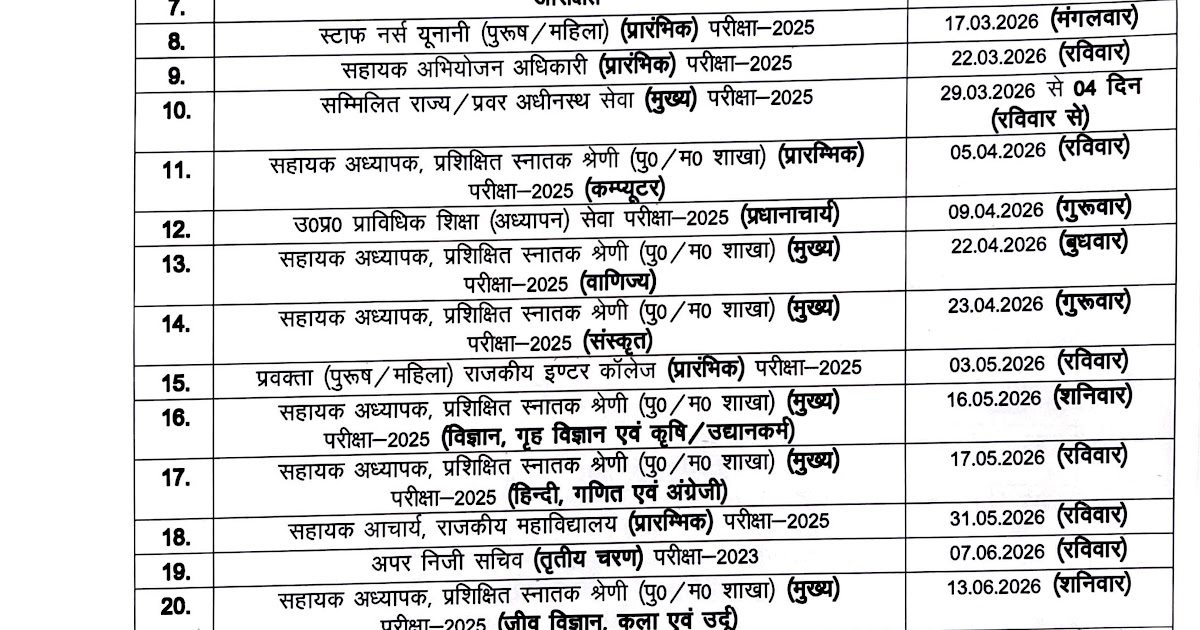 उत्तर प्रदेश लोक सेवा आयोग द्वारा वर्ष 2026 में आयोजित की जाने वाली परीक्षाओं का कैलेण्डर जारी, देखें Basic ...