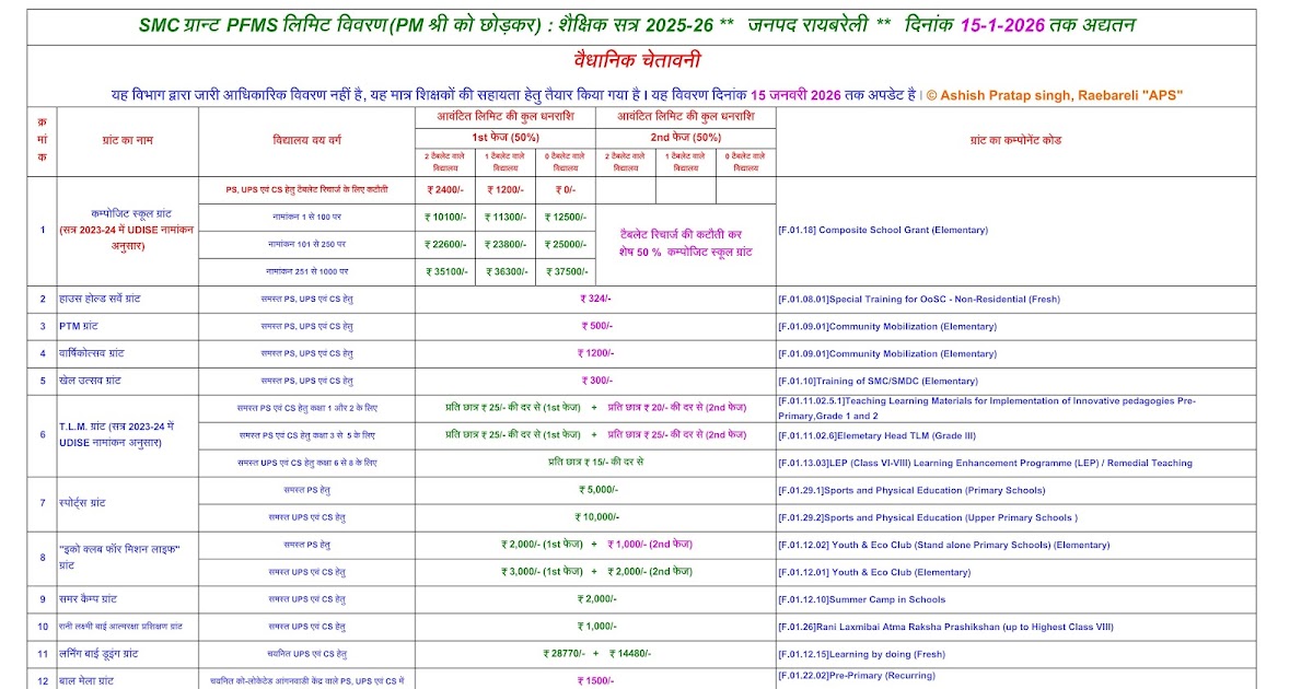 SMC ग्रान्ट PFMS लिमिट विवरण (PM श्री को छोड़कर): शैक्षिक सत्र 2025-26 – UpdateMarts| PRIMARY KA MASTER | SHIKSHAMITRA | Basic Shiksha News