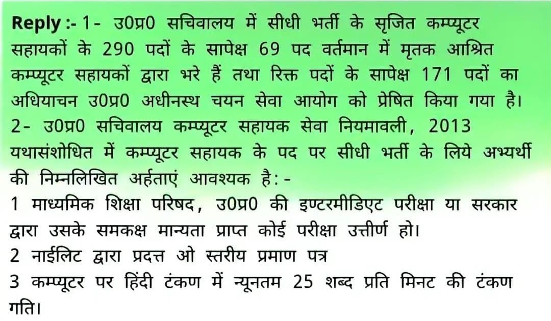 यूपी सचिवालय कंप्यूटर सहायक भर्ती: 171 रिक्त पदों के लिए अधियाचन भेजा गया, जानें योग्यता व नियम – UpdateMarts| PRIMARY KA MASTER | SHIKSHAMITRA | Basic Shiksha News