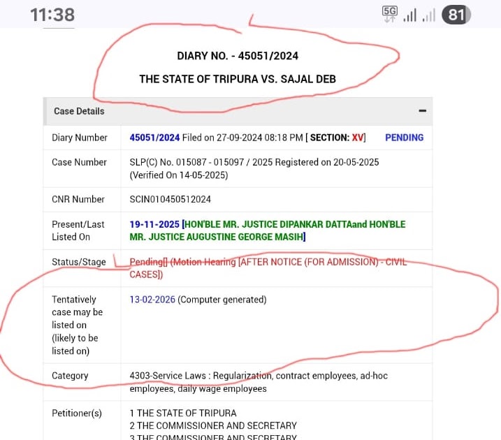 *बिग ब्रेकिंग न्यूज़* *टेट अनिवार्यता प्रकरण को लेकर त्रिपुरा सरकार बनाम सजल देब एवं अन्य की तरफ से माननीय सर्वोच्च ...