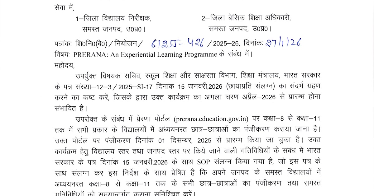 PERRANA: An experimental learning program के संबंध में class 8th – 11th तक के बच्चों का रजिस्ट्रेशन आगामी अप्रैल 26 के लिए कराने के लिए समस्त डीआईओएस एवं बीएसए को शिक्षा निदेशक (बेसिक) ने आदेश जारी – UpdateMarts| PRIMARY KA MASTER | SHIKSHAMITRA | Basic Shiksha News