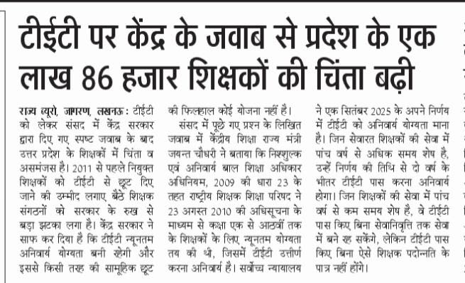 बड़ा अपडेट: TET अनिवार्यता से छूट नहीं: यूपी के लाखों शिक्षक प्रभावित, केंद्र सरकार का साफ इनकार – UpdateMarts| PRIMARY KA MASTER | SHIKSHAMITRA | Basic Shiksha News