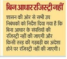 राज्य सरकार जमीनों की बिक्री में फर्जीवाड़ा रोकने के लिए एक फरवरी से रजिस्ट्री के साथ आधार प्रमाणीकरण अनिवार्य करने ...