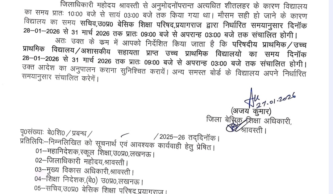 जिले में परिषदीय विद्यालयों के समय में परिवर्तन, 28 जनवरी से लागू नया समय – UpdateMarts| PRIMARY KA MASTER | SHIKSHAMITRA | Basic Shiksha News