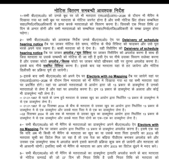 SIR –2026 के अंतर्गत नोटिस वितरण व दस्तावेज़ अपलोड संबंधी निर्देश – UpdateMarts| PRIMARY KA MASTER | SHIKSHAMITRA | Basic Shiksha News