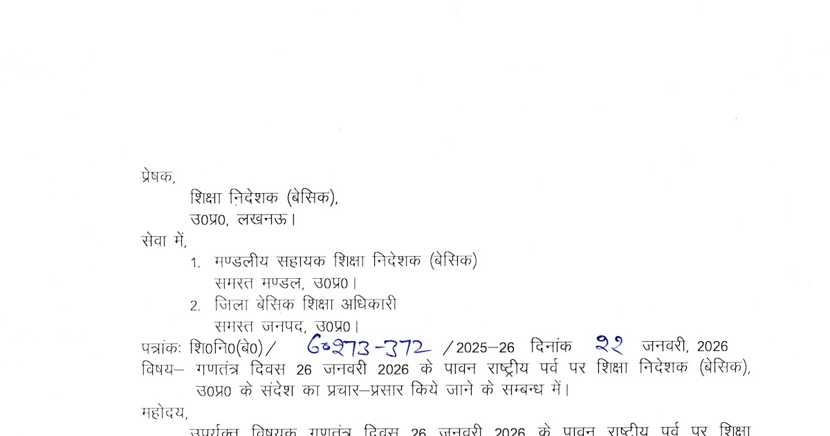 *गणतंत्र दिवस* विशेष: 8:30 बजे सरकारी भवनों पर ध्वजारोहण, *शिक्षण संस्थाओं में राष्ट्रध्वज प्रातः 10 बजे फहराया जाए।* Basic Shiksha ...