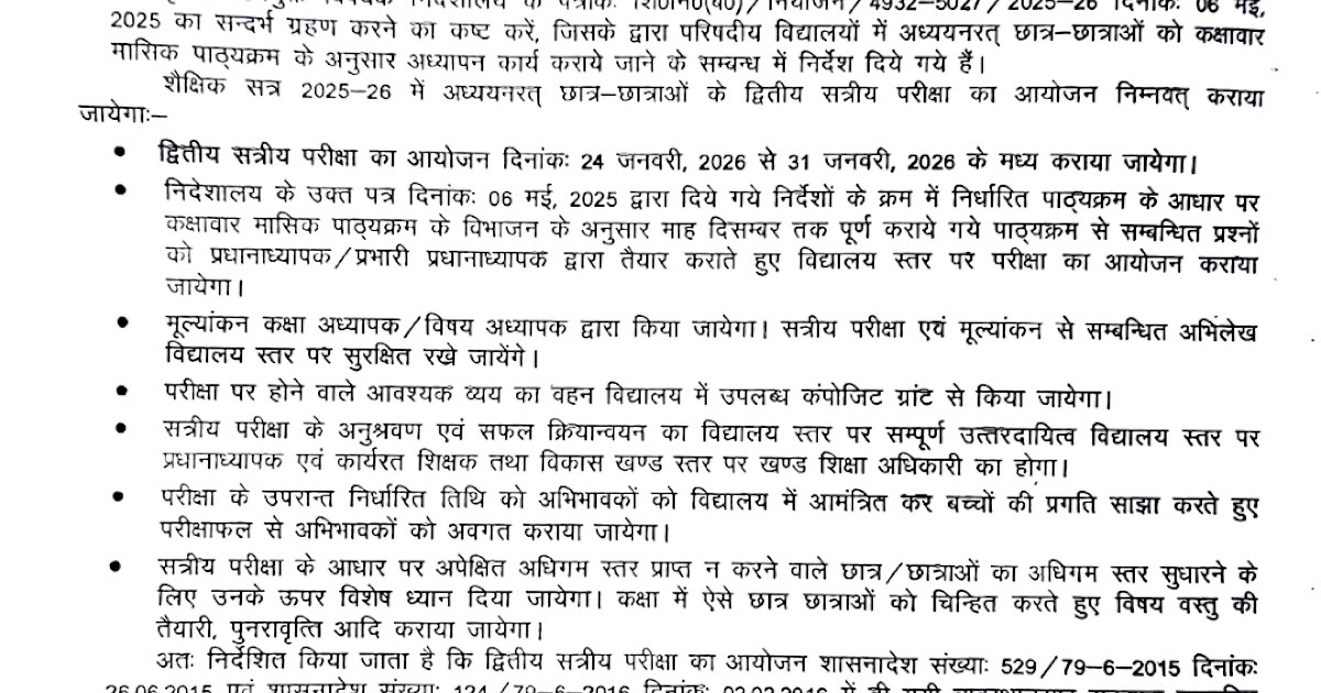 परिषदीय / मान्यता प्राप्त विद्यालयों में शैक्षिक सत्र 2025-28 में द्वितीय सत्रीय परीक्षा का आयोजन कराये जाने के सम्बन्ध में आदेश व परीक्षा कार्यक्रम – UpdateMarts| PRIMARY KA MASTER | SHIKSHAMITRA | Basic Shiksha News
