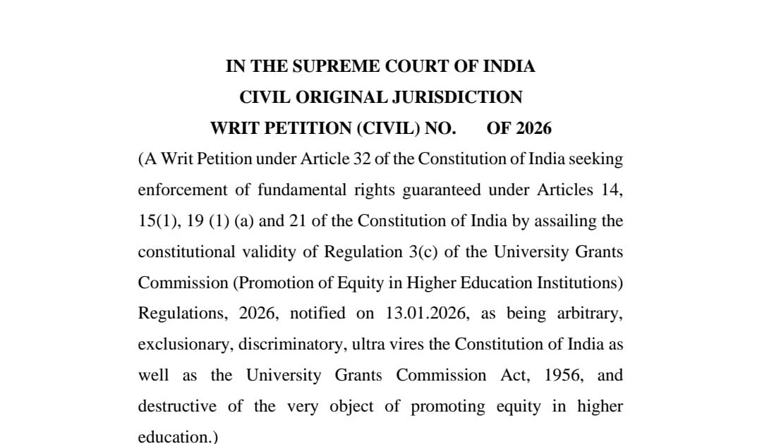 यूजीसी के नए रेगुलेशन को सुप्रीम कोर्ट में चुनौती दी गई है। याचिका में कहा गया है कि इस ...